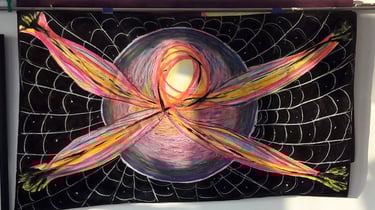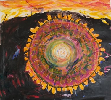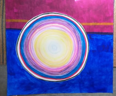 Infatuation with the wholeness, perfection, simplicity, completeness, and the calmness of a circle. Owning the idea that I am an artist because I do art… nothing more. Showing others, displaying and what element that brings to the playfulness of the experience